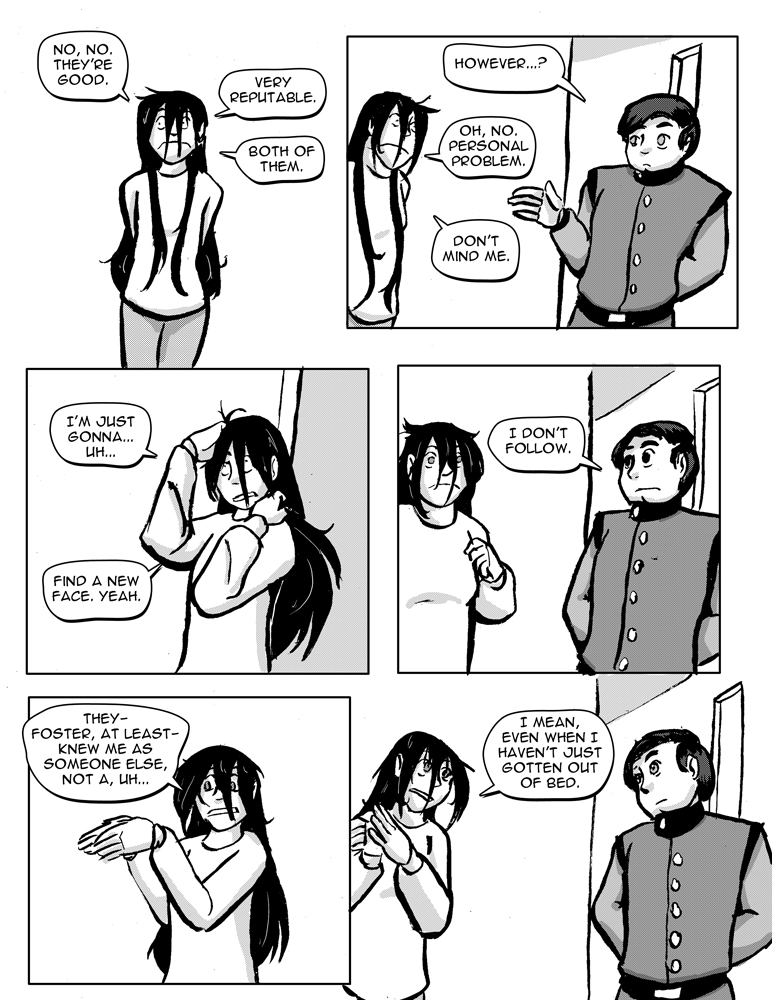 "Foster and Wyatt knew me back when I was pretending to be a normal person and since then I've returned to full goblin mode and I am going to lose whatever respect they might still have for me and not take me seriously."